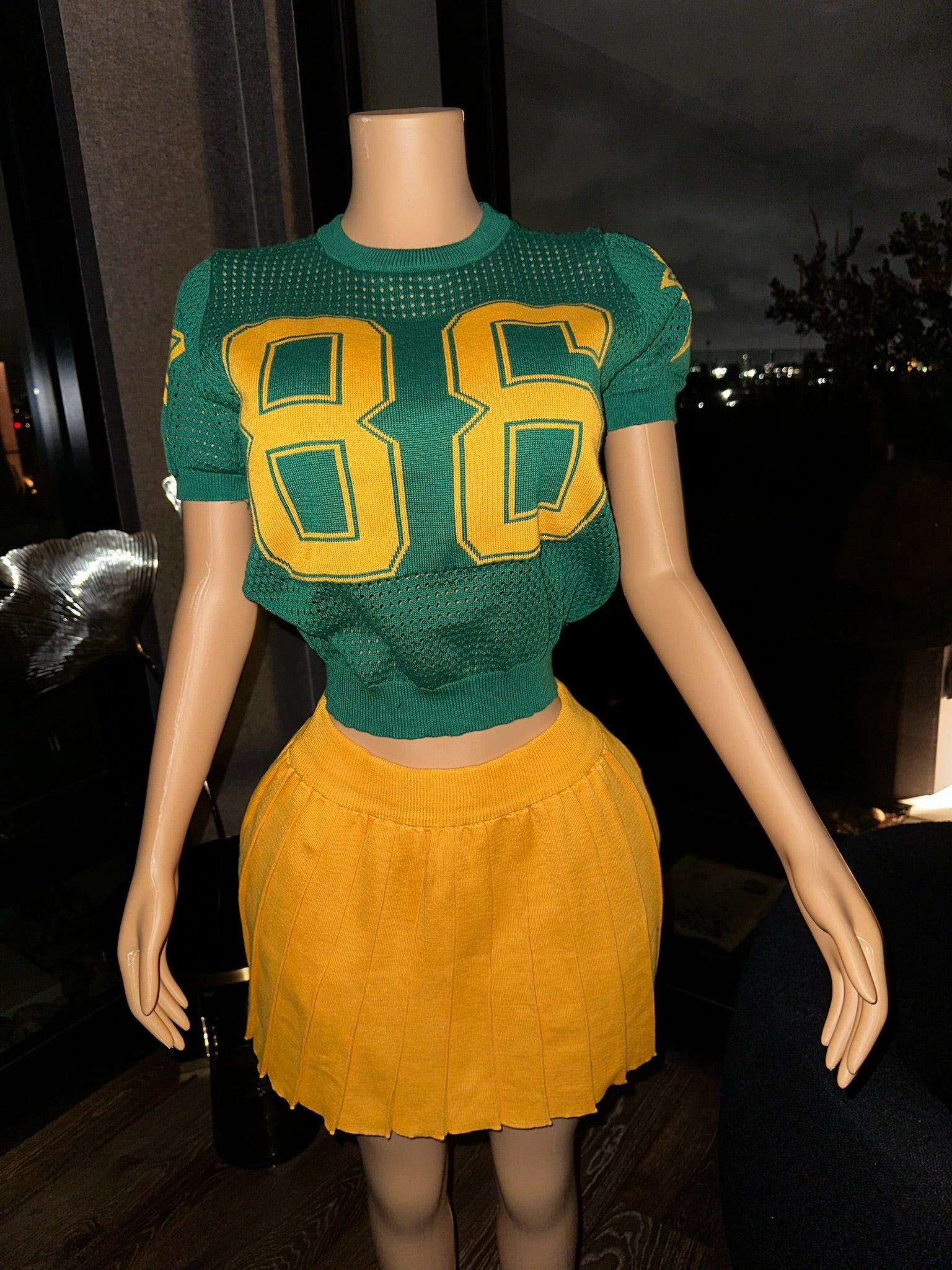 Get ready for game day with our In The Game 2 Piece Set! This high-quality knit set comes in one size that fits all, providing comfort and style for any fan. Show your team spirit with the perfect game day outfit.